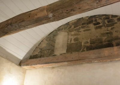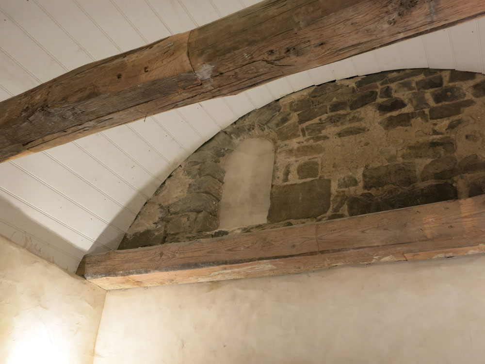 Die östliche Erweiterung des Saales sowie die Errichtung des nördlich angrenzenden Vorraums sind in spätgotischer Zeit erfolgt. Aus dieser Bauphase stammt die spätgotische Segmentbogennische in der Ostfassade (Abb. 05).