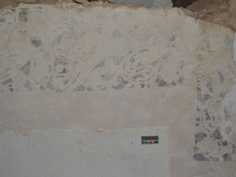 Schablonenmalerei am Deckenanschluss der Süd- und Nordwand (Abb. 08, 09)