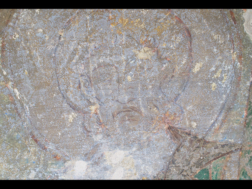 Detail der Heiligendarstellung im südlichen Anschluss an den Bogenscheitel, Bestand und Zustand der Malerei nach der Konservierung 2018
