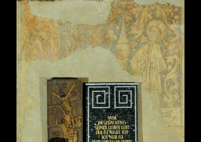 Was die verwendete Technik betrifft, so lässt sich diese nur mit wenigen erhaltenen Beispielen des 15. und frühen 16. Jahrhunderts vergleichen.¹⁵ Im Gegensatz zu den älteren Putzritzungen von Magdeburg (Dom, Ostflügel und St. Johannis) wird hier die in den Innenraum versetzte Darstellung bereichert zu einer mehrfarbigen Kratzputzdekoration mit biblisch-mariologischem Inhalt.