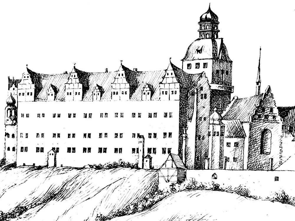 Schloss Wolmirstedt, Ansicht von Südosten, nach Gebhard von Alvensleben 1665 (Quelle: Museum Wolmirstedt)